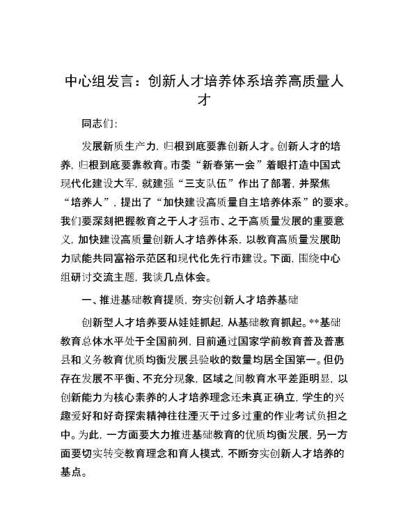 中心组发言:创新人才培养体系 培养高质量人才 2024-07-04 Word模板 132 购买前,请一定要先点击这里看看,欢迎持续关注,精彩模板每天推送 预览结束,本文件为word文档,一共7页,共2989字,请购买后,下载后查看 购买前,请一定要先点击这里看看,欢迎持续关注,精彩模板每天推送 资源下载下载价格29 RMBVIP免费升级VIP点击检测网盘有效后购买有任何充值和下载问题请加微信:xuexixuexi66 0 演讲发言