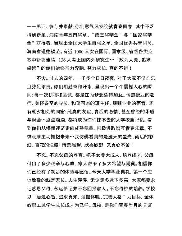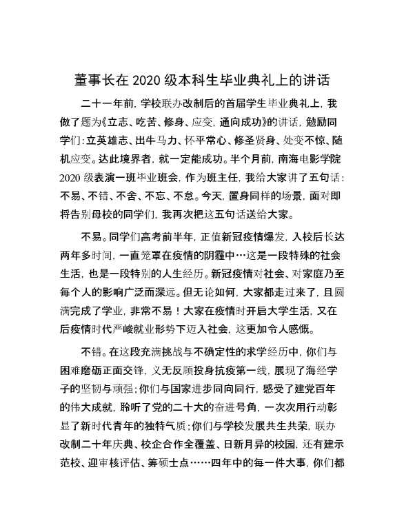 董事长在2020级本科生毕业典礼上的讲话 2024-07-04 Word模板 155 购买前,请一定要先点击这里看看,欢迎持续关注,精彩模板每天推送 预览结束,本文件为word文档,一共4页,共1981字,请购买后,下载后查看 购买前,请一定要先点击这里看看,欢迎持续关注,精彩模板每天推送 资源下载下载价格29 RMBVIP免费升级VIP点击检测网盘有效后购买有任何充值和下载问题请加微信:xuexixuexi66 0 演讲发言