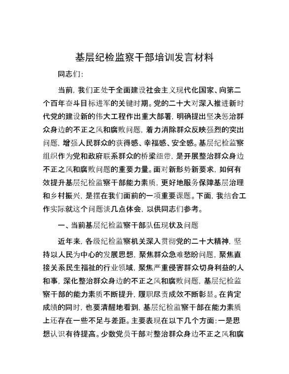 基层纪检监察干部培训发言材料 2024-07-04 Word模板 90 购买前,请一定要先点击这里看看,欢迎持续关注,精彩模板每天推送 预览结束,本文件为word文档,一共7页,共3292字,请购买后,下载后查看 购买前,请一定要先点击这里看看,欢迎持续关注,精彩模板每天推送 资源下载下载价格29 RMBVIP免费升级VIP点击检测网盘有效后购买有任何充值和下载问题请加微信:xuexixuexi66 0 演讲发言