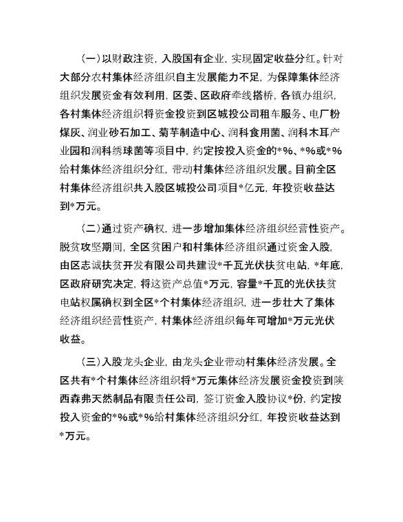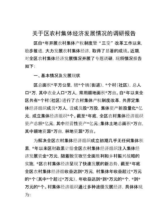 关于区农村集体经济发展情况的调研报告 2024-07-09 Word模板 108 购买前,请一定要先点击这里看看,欢迎持续关注,精彩模板每天推送 预览结束,本文件为word文档,一共9页,共4038字,请购买后,下载后查看 购买前,请一定要先点击这里看看,欢迎持续关注,精彩模板每天推送 资源下载下载价格29 RMBVIP免费升级VIP点击检测网盘有效后购买有任何充值和下载问题请加微信:xuexixuexi66 0 总结汇报