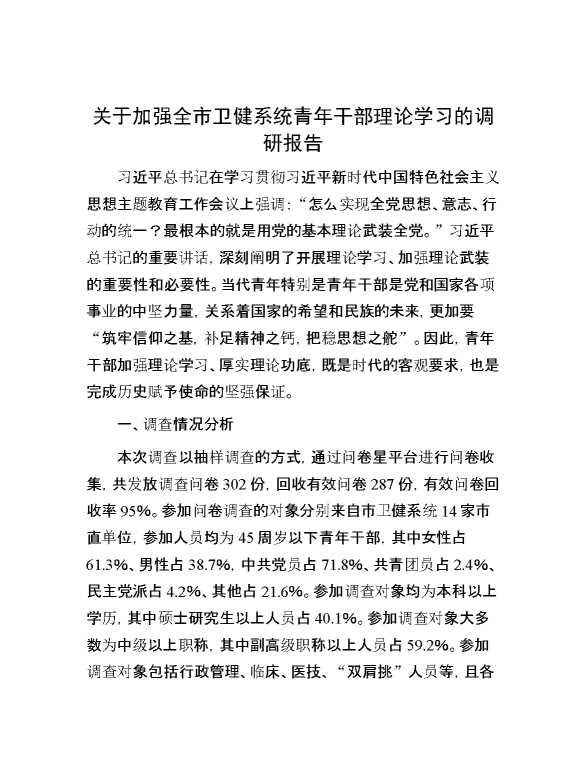 关于加强全市卫健系统青年干部理论学习的调研报告 2024-07-09 Word模板 103 购买前,请一定要先点击这里看看,欢迎持续关注,精彩模板每天推送 预览结束,本文件为word文档,一共8页,共4090字,请购买后,下载后查看 购买前,请一定要先点击这里看看,欢迎持续关注,精彩模板每天推送 资源下载下载价格29 RMBVIP免费升级VIP点击检测网盘有效后购买有任何充值和下载问题请加微信:xuexixuexi66 0 总结汇报