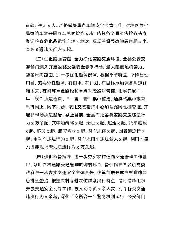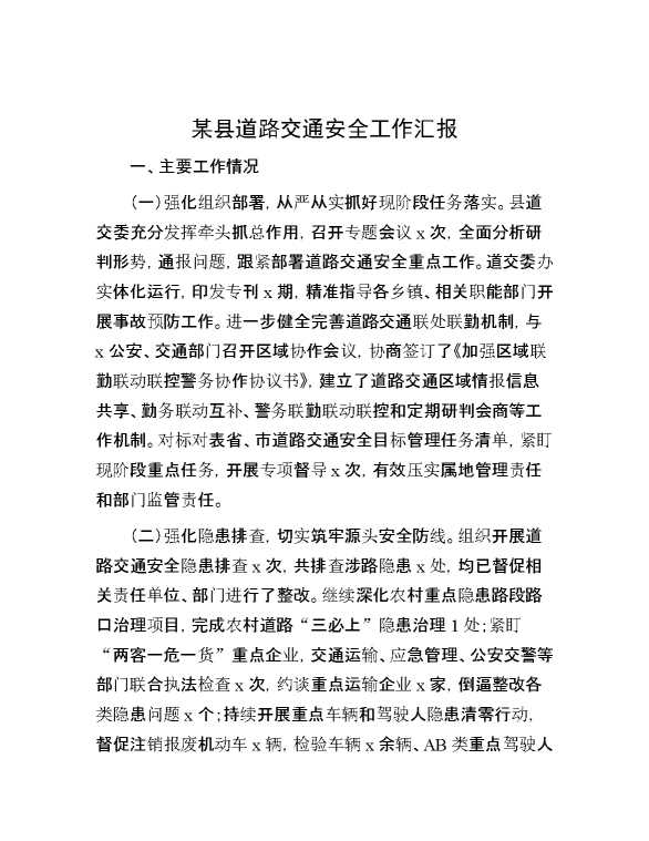 某县道路交通安全工作汇报 2024-07-09 Word模板 106 购买前,请一定要先点击这里看看,欢迎持续关注,精彩模板每天推送 预览结束,本文件为word文档,一共6页,共2630字,请购买后,下载后查看 购买前,请一定要先点击这里看看,欢迎持续关注,精彩模板每天推送 资源下载下载价格29 RMBVIP免费升级VIP点击检测网盘有效后购买有任何充值和下载问题请加微信:xuexixuexi66 0 总结汇报