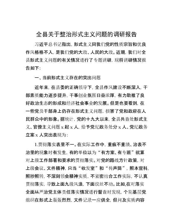 全县关于整治形式主义问题的调研报告 2024-07-09 Word模板 104 购买前,请一定要先点击这里看看,欢迎持续关注,精彩模板每天推送 预览结束,本文件为word文档,一共7页,共3109字,请购买后,下载后查看 购买前,请一定要先点击这里看看,欢迎持续关注,精彩模板每天推送 资源下载下载价格29 RMBVIP免费升级VIP点击检测网盘有效后购买有任何充值和下载问题请加微信:xuexixuexi66 0 总结汇报