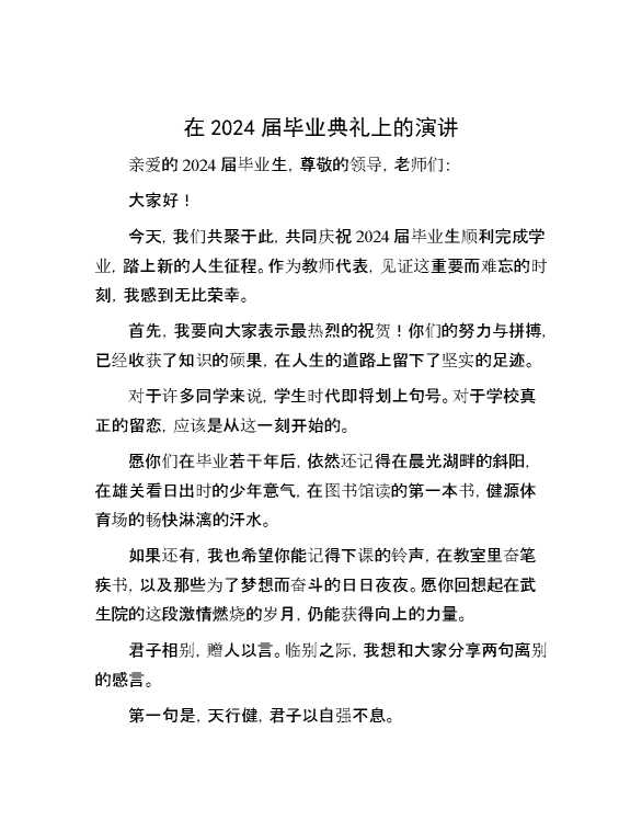 在2024届毕业典礼上的演讲 2024-07-16 Word模板 143 购买前,请一定要先点击这里看看,欢迎持续关注,精彩模板每天推送 预览结束,本文件为word文档,一共3页,共920字,请购买后,下载后查看 购买前,请一定要先点击这里看看,欢迎持续关注,精彩模板每天推送 资源下载下载价格29 RMBVIP免费升级VIP点击检测网盘有效后购买有任何充值和下载问题请加微信:xuexixuexi66 0 演讲发言
