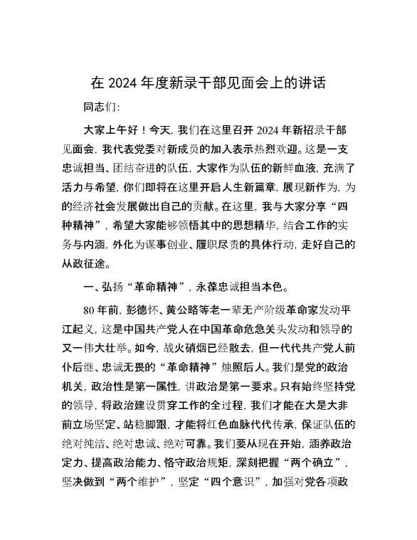 在2024年度新录干部见面会上的讲话 2024-07-16 Word模板 106 购买前,请一定要先点击这里看看,欢迎持续关注,精彩模板每天推送 预览结束,本文件为word文档,一共4页,共1526字,请购买后,下载后查看 购买前,请一定要先点击这里看看,欢迎持续关注,精彩模板每天推送 资源下载下载价格29 RMBVIP免费升级VIP点击检测网盘有效后购买有任何充值和下载问题请加微信:xuexixuexi66 0 演讲发言