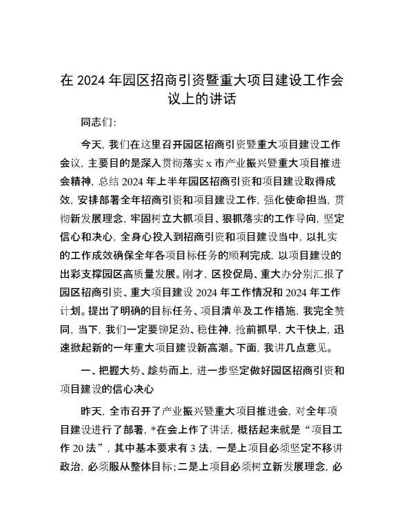 在2024年园区招商引资暨重大项目建设工作会议上的讲话 2024-07-16 Word模板 114 购买前,请一定要先点击这里看看,欢迎持续关注,精彩模板每天推送 预览结束,本文件为word文档,一共18页,共9217字,请购买后,下载后查看 购买前,请一定要先点击这里看看,欢迎持续关注,精彩模板每天推送 资源下载下载价格29 RMBVIP免费升级VIP点击检测网盘有效后购买有任何充值和下载问题请加微信:xuexixuexi66 0 演讲发言