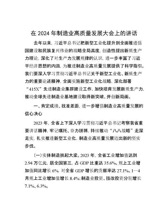 在2024年制造业高质量发展大会上的讲话 2024-07-16 Word模板 113 购买前,请一定要先点击这里看看,欢迎持续关注,精彩模板每天推送 预览结束,本文件为word文档,一共8页,共3544字,请购买后,下载后查看 购买前,请一定要先点击这里看看,欢迎持续关注,精彩模板每天推送 资源下载下载价格29 RMBVIP免费升级VIP点击检测网盘有效后购买有任何充值和下载问题请加微信:xuexixuexi66 0 演讲发言