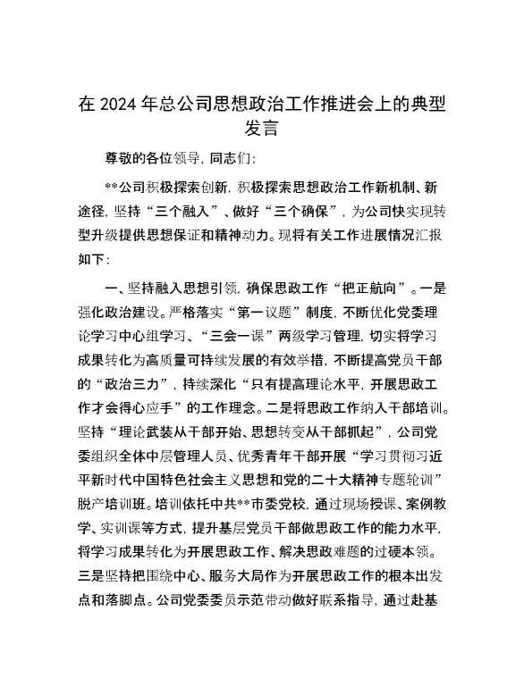 在2024年总公司思想政治工作推进会上的典型发言 2024-07-16 Word模板 111 购买前,请一定要先点击这里看看,欢迎持续关注,精彩模板每天推送 预览结束,本文件为word文档,一共4页,共1791字,请购买后,下载后查看 购买前,请一定要先点击这里看看,欢迎持续关注,精彩模板每天推送 资源下载下载价格29 RMBVIP免费升级VIP点击检测网盘有效后购买有任何充值和下载问题请加微信:xuexixuexi66 0 演讲发言
