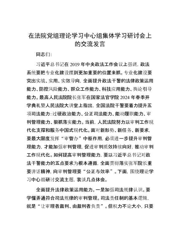 在法院党组理论学习中心组集体学习研讨会上的交流发言 2024-07-16 Word模板 109 购买前,请一定要先点击这里看看,欢迎持续关注,精彩模板每天推送 预览结束,本文件为word文档,一共5页,共2095字,请购买后,下载后查看 购买前,请一定要先点击这里看看,欢迎持续关注,精彩模板每天推送 资源下载下载价格29 RMBVIP免费升级VIP点击检测网盘有效后购买有任何充值和下载问题请加微信:xuexixuexi66 0 演讲发言