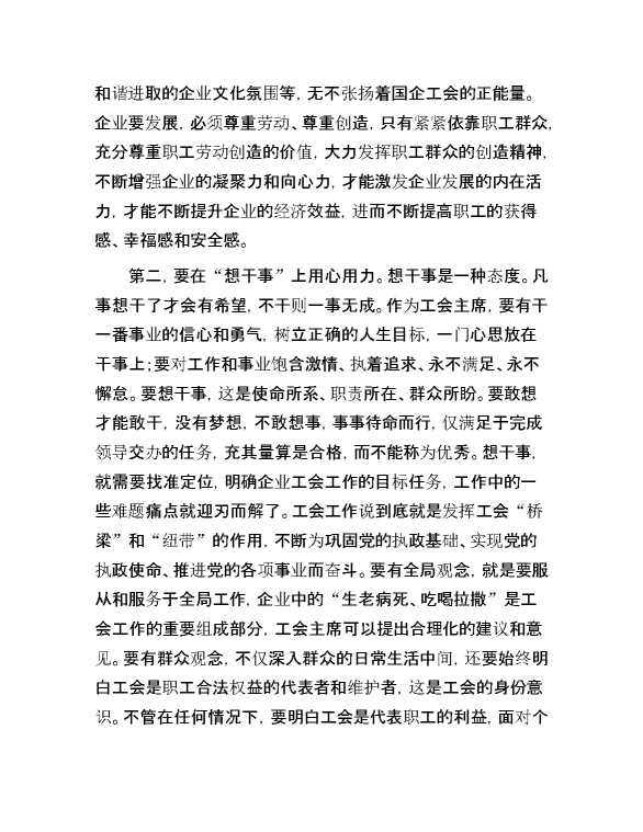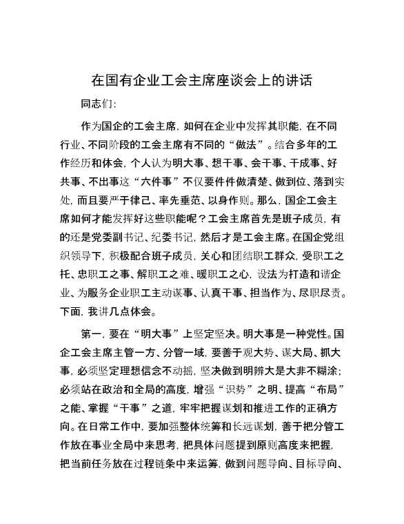 在国有企业工会主席座谈会上的讲话 2024-07-16 Word模板 111 购买前,请一定要先点击这里看看,欢迎持续关注,精彩模板每天推送 预览结束,本文件为word文档,一共11页,共5797字,请购买后,下载后查看 购买前,请一定要先点击这里看看,欢迎持续关注,精彩模板每天推送 资源下载下载价格29 RMBVIP免费升级VIP点击检测网盘有效后购买有任何充值和下载问题请加微信:xuexixuexi66 0 演讲发言