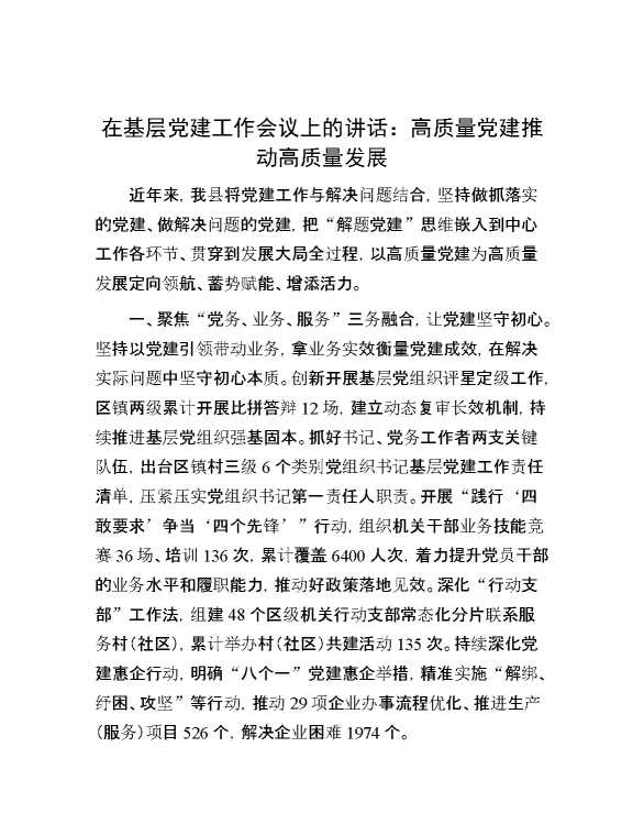 在基层党建工作会议上的讲话:高质量党建推动高质量发展 2024-07-16 Word模板 117 购买前,请一定要先点击这里看看,欢迎持续关注,精彩模板每天推送 预览结束,本文件为word文档,一共3页,共1203字,请购买后,下载后查看 购买前,请一定要先点击这里看看,欢迎持续关注,精彩模板每天推送 资源下载下载价格29 RMBVIP免费升级VIP点击检测网盘有效后购买有任何充值和下载问题请加微信:xuexixuexi66 0 演讲发言