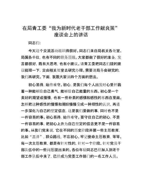 在局青工委“我为新时代老干部工作献良策”座谈会上的讲话 2024-07-16 Word模板 114 购买前,请一定要先点击这里看看,欢迎持续关注,精彩模板每天推送 预览结束,本文件为word文档,一共7页,共3225字,请购买后,下载后查看 购买前,请一定要先点击这里看看,欢迎持续关注,精彩模板每天推送 资源下载下载价格29 RMBVIP免费升级VIP点击检测网盘有效后购买有任何充值和下载问题请加微信:xuexixuexi66 0 演讲发言