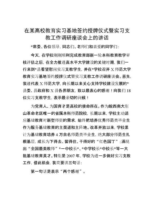 在某高校教育实习基地签约授牌仪式暨实习支教工作调研座谈会上的讲话 2024-07-16 Word模板 111 购买前,请一定要先点击这里看看,欢迎持续关注,精彩模板每天推送 预览结束,本文件为word文档,一共3页,共1071字,请购买后,下载后查看 购买前,请一定要先点击这里看看,欢迎持续关注,精彩模板每天推送 资源下载下载价格29 RMBVIP免费升级VIP点击检测网盘有效后购买有任何充值和下载问题请加微信:xuexixuexi66 0 演讲发言