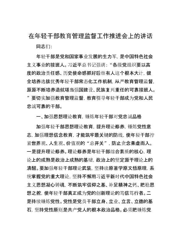在年轻干部教育管理监督工作推进会上的讲话 2024-07-16 Word模板 110 购买前,请一定要先点击这里看看,欢迎持续关注,精彩模板每天推送 预览结束,本文件为word文档,一共5页,共2373字,请购买后,下载后查看 购买前,请一定要先点击这里看看,欢迎持续关注,精彩模板每天推送 资源下载下载价格29 RMBVIP免费升级VIP点击检测网盘有效后购买有任何充值和下载问题请加微信:xuexixuexi66 0 演讲发言