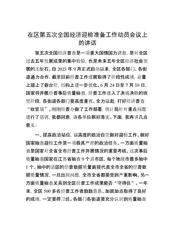 在区第五次全国经济迎检准备工作动员会议上的讲话 2024-07-16 Word模板 112 购买前,请一定要先点击这里看看,欢迎持续关注,精彩模板每天推送 预览结束,本文件为word文档,一共3页,共1302字,请购买后,下载后查看 购买前,请一定要先点击这里看看,欢迎持续关注,精彩模板每天推送 资源下载下载价格29 RMBVIP免费升级VIP点击检测网盘有效后购买有任何充值和下载问题请加微信:xuexixuexi66 0 演讲发言