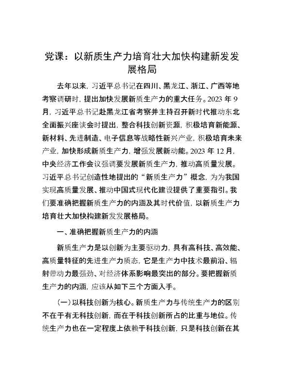 党课:以新质生产力培育壮大加快构建新发发展格局 2024-07-16 Word模板 131 购买前,请一定要先点击这里看看,欢迎持续关注,精彩模板每天推送 预览结束,本文件为word文档,一共8页,共4022字,请购买后,下载后查看 购买前,请一定要先点击这里看看,欢迎持续关注,精彩模板每天推送 资源下载下载价格29 RMBVIP免费升级VIP点击检测网盘有效后购买有任何充值和下载问题请加微信:xuexixuexi66 0 党课及生活会