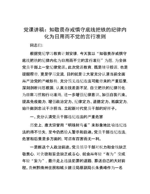 党课讲稿:知敬畏 存戒惧 守底线 把铁的纪律内化为日用而不觉的言行准则 2024-07-16 Word模板 111 购买前,请一定要先点击这里看看,欢迎持续关注,精彩模板每天推送 预览结束,本文件为word文档,一共14页,共7101字,请购买后,下载后查看 购买前,请一定要先点击这里看看,欢迎持续关注,精彩模板每天推送 资源下载下载价格29 RMBVIP免费升级VIP点击检测网盘有效后购买有任何充值和下载问题请加微信:xuexixuexi66 0 党课及生活会