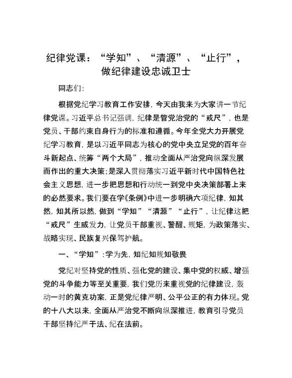 纪律党课:“学知”、“清源”、“止行”,做纪律建设忠诚卫士 2024-07-16 Word模板 105 购买前,请一定要先点击这里看看,欢迎持续关注,精彩模板每天推送 预览结束,本文件为word文档,一共8页,共3772字,请购买后,下载后查看 购买前,请一定要先点击这里看看,欢迎持续关注,精彩模板每天推送 资源下载下载价格29 RMBVIP免费升级VIP点击检测网盘有效后购买有任何充值和下载问题请加微信:xuexixuexi66 0 党课及生活会