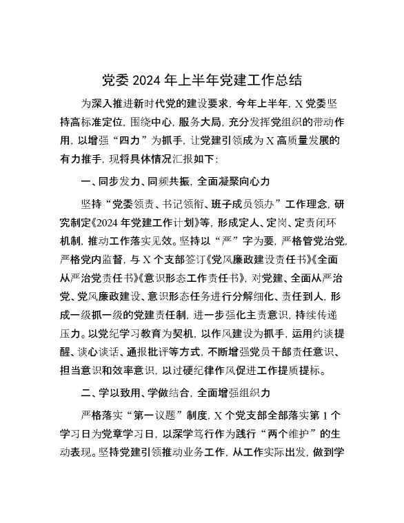 党委2024年上半年党建工作总结 2024-07-20 Word模板 114 购买前,请一定要先点击这里看看,欢迎持续关注,精彩模板每天推送 预览结束,本文件为word文档,一共4页,共1544字,请购买后,下载后查看 购买前,请一定要先点击这里看看,欢迎持续关注,精彩模板每天推送 资源下载下载价格29 RMBVIP免费升级VIP点击检测网盘有效后购买有任何充值和下载问题请加微信:xuexixuexi66 0 总结汇报