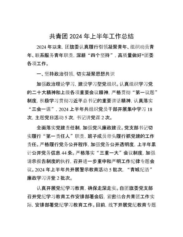 共青团2024年上半年工作总结 2024-07-20 Word模板 120 购买前,请一定要先点击这里看看,欢迎持续关注,精彩模板每天推送 预览结束,本文件为word文档,一共6页,共2761字,请购买后,下载后查看 购买前,请一定要先点击这里看看,欢迎持续关注,精彩模板每天推送 资源下载下载价格29 RMBVIP免费升级VIP点击检测网盘有效后购买有任何充值和下载问题请加微信:xuexixuexi66 0 总结汇报