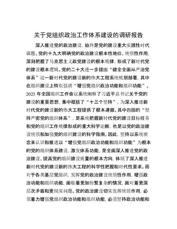 关于党组织政治工作体系建设的调研报告 2024-07-20 Word模板 145 购买前,请一定要先点击这里看看,欢迎持续关注,精彩模板每天推送 预览结束,本文件为word文档,一共16页,共8404字,请购买后,下载后查看 购买前,请一定要先点击这里看看,欢迎持续关注,精彩模板每天推送 资源下载下载价格29 RMBVIP免费升级VIP点击检测网盘有效后购买有任何充值和下载问题请加微信:xuexixuexi66 0 总结汇报