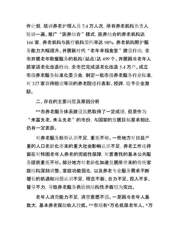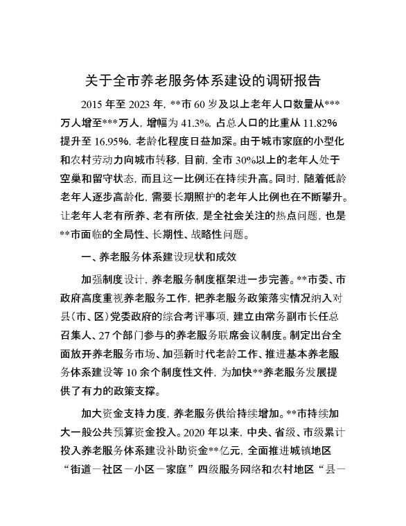 关于全市养老服务体系建设的调研报告 2024-07-20 Word模板 141 购买前,请一定要先点击这里看看,欢迎持续关注,精彩模板每天推送 预览结束,本文件为word文档,一共8页,共3953字,请购买后,下载后查看 购买前,请一定要先点击这里看看,欢迎持续关注,精彩模板每天推送 资源下载下载价格29 RMBVIP免费升级VIP点击检测网盘有效后购买有任何充值和下载问题请加微信:xuexixuexi66 0 总结汇报