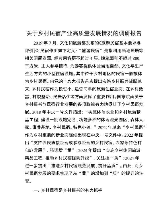 关于乡村民宿产业高质量发展情况的调研报告 2024-07-20 Word模板 118 购买前,请一定要先点击这里看看,欢迎持续关注,精彩模板每天推送 预览结束,本文件为word文档,一共16页,共8062字,请购买后,下载后查看 购买前,请一定要先点击这里看看,欢迎持续关注,精彩模板每天推送 资源下载下载价格29 RMBVIP免费升级VIP点击检测网盘有效后购买有任何充值和下载问题请加微信:xuexixuexi66 0 总结汇报