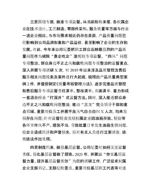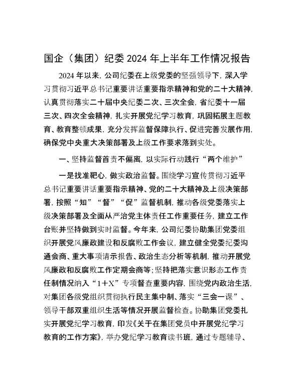 国企(集团)纪委2024年上半年工作情况报告 2024-07-20 Word模板 111 购买前,请一定要先点击这里看看,欢迎持续关注,精彩模板每天推送 预览结束,本文件为word文档,一共10页,共4631字,请购买后,下载后查看 购买前,请一定要先点击这里看看,欢迎持续关注,精彩模板每天推送 资源下载下载价格29 RMBVIP免费升级VIP点击检测网盘有效后购买有任何充值和下载问题请加微信:xuexixuexi66 0 总结汇报