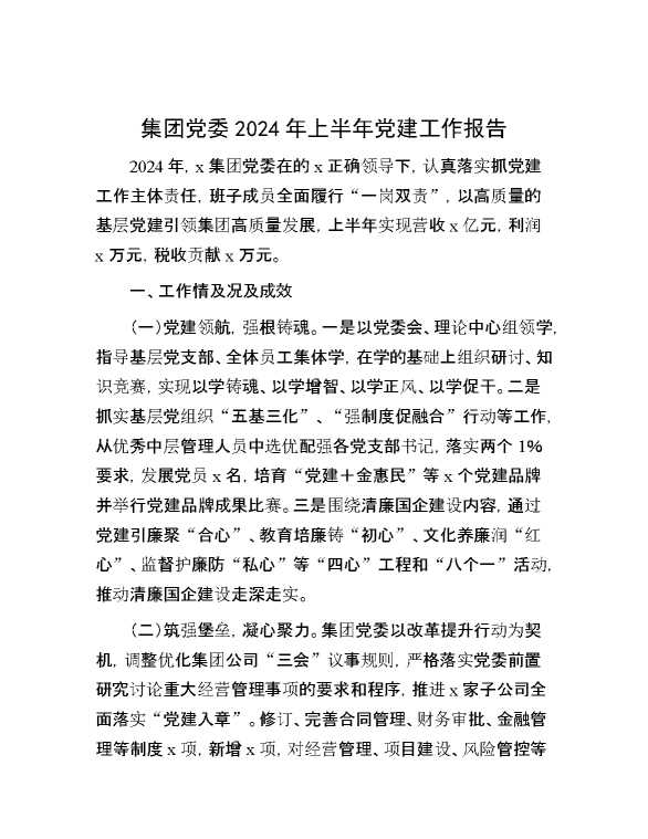 集团党委2024年上半年党建工作报告 2024-07-20 Word模板 118 购买前,请一定要先点击这里看看,欢迎持续关注,精彩模板每天推送 预览结束,本文件为word文档,一共5页,共2074字,请购买后,下载后查看 购买前,请一定要先点击这里看看,欢迎持续关注,精彩模板每天推送 资源下载下载价格29 RMBVIP免费升级VIP点击检测网盘有效后购买有任何充值和下载问题请加微信:xuexixuexi66 0 总结汇报