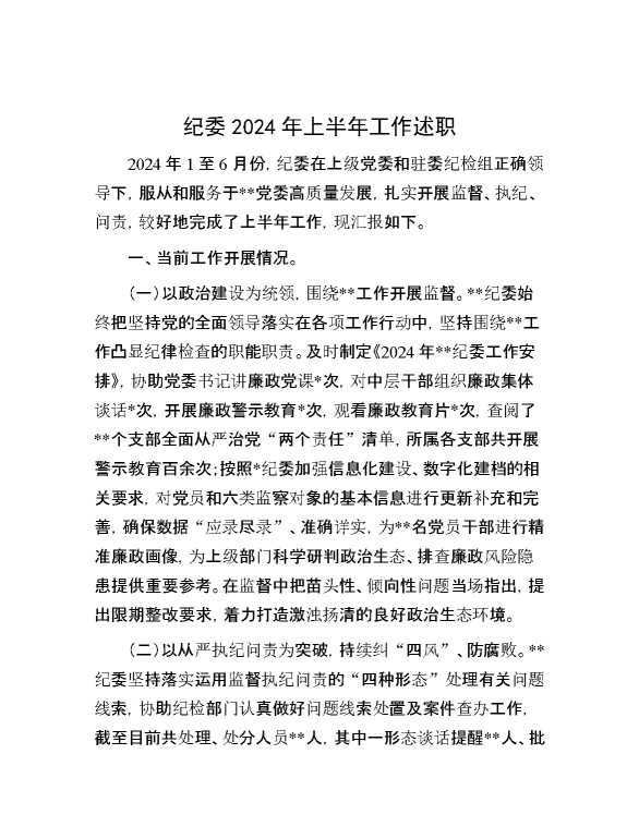 纪委2024年上半年工作述职 2024-07-20 Word模板 152 购买前,请一定要先点击这里看看,欢迎持续关注,精彩模板每天推送 预览结束,本文件为word文档,一共4页,共1426字,请购买后,下载后查看 购买前,请一定要先点击这里看看,欢迎持续关注,精彩模板每天推送 资源下载下载价格29 RMBVIP免费升级VIP点击检测网盘有效后购买有任何充值和下载问题请加微信:xuexixuexi66 0 总结汇报