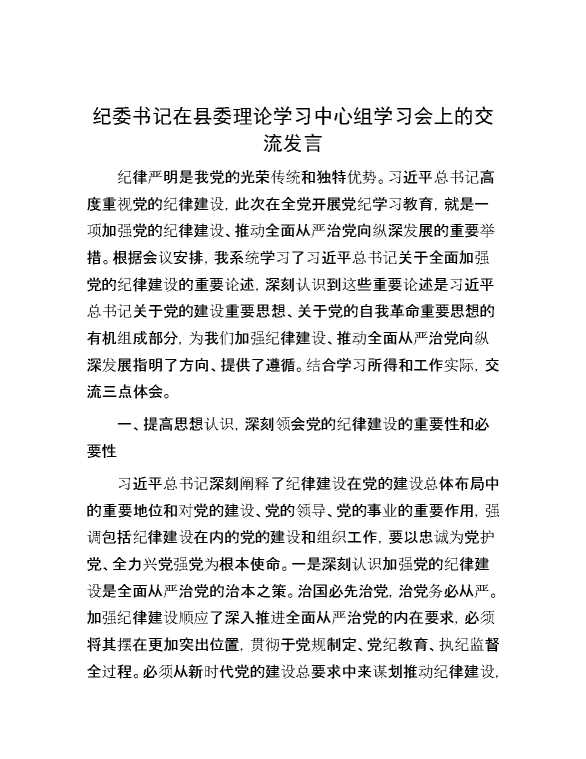纪委书记在县委理论学习中心组学习会上的交流发言 2024-07-23 Word模板 102 购买前,请一定要先点击这里看看,欢迎持续关注,精彩模板每天推送 预览结束,本文件为word文档,一共4页,共1807字,请购买后,下载后查看 购买前,请一定要先点击这里看看,欢迎持续关注,精彩模板每天推送 资源下载下载价格29 RMBVIP免费升级VIP点击检测网盘有效后购买有任何充值和下载问题请加微信:xuexixuexi66 0 演讲发言