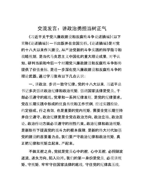 交流发言:讲政治 勇担当 树正气 2024-07-23 Word模板 103 购买前,请一定要先点击这里看看,欢迎持续关注,精彩模板每天推送 预览结束,本文件为word文档,一共8页,共4040字,请购买后,下载后查看 购买前,请一定要先点击这里看看,欢迎持续关注,精彩模板每天推送 资源下载下载价格29 RMBVIP免费升级VIP点击检测网盘有效后购买有任何充值和下载问题请加微信:xuexixuexi66 0 演讲发言