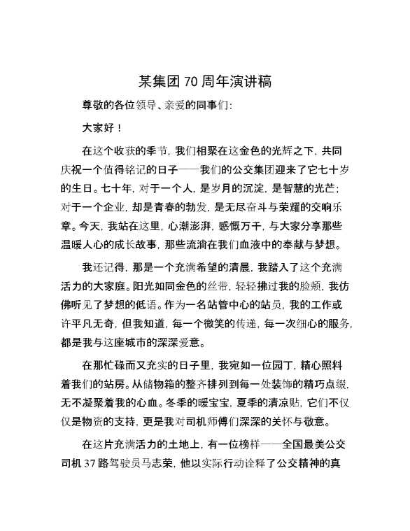某集团70周年演讲稿 2024-07-23 Word模板 108 购买前,请一定要先点击这里看看,欢迎持续关注,精彩模板每天推送 预览结束,本文件为word文档,一共2页,共840字,请购买后,下载后查看 购买前,请一定要先点击这里看看,欢迎持续关注,精彩模板每天推送 资源下载下载价格29 RMBVIP免费升级VIP点击检测网盘有效后购买有任何充值和下载问题请加微信:xuexixuexi66 0 演讲发言