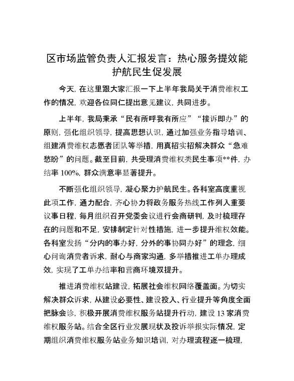 区市场监管负责人汇报发言:热心服务提效能 护航民生促发展 2024-07-23 Word模板 143 购买前,请一定要先点击这里看看,欢迎持续关注,精彩模板每天推送 预览结束,本文件为word文档,一共2页,共957字,请购买后,下载后查看 购买前,请一定要先点击这里看看,欢迎持续关注,精彩模板每天推送 资源下载下载价格29 RMBVIP免费升级VIP点击检测网盘有效后购买有任何充值和下载问题请加微信:xuexixuexi66 0 演讲发言