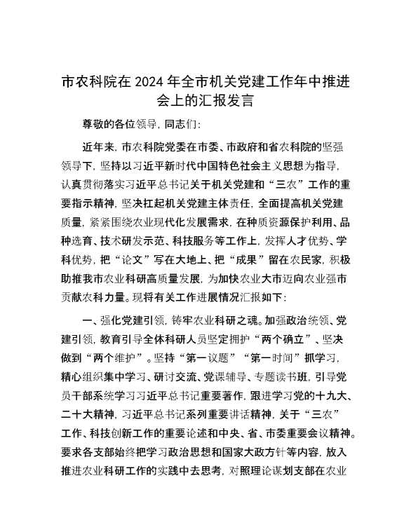 市农科院在2024年全市机关党建工作年中推进会上的汇报发言 2024-07-23 Word模板 112 购买前,请一定要先点击这里看看,欢迎持续关注,精彩模板每天推送 预览结束,本文件为word文档,一共5页,共2525字,请购买后,下载后查看 购买前,请一定要先点击这里看看,欢迎持续关注,精彩模板每天推送 资源下载下载价格29 RMBVIP免费升级VIP点击检测网盘有效后购买有任何充值和下载问题请加微信:xuexixuexi66 0 演讲发言