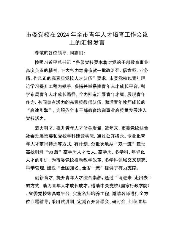 市委党校在2024年全市青年人才培育工作会议上的汇报发言 2024-07-23 Word模板 108 购买前,请一定要先点击这里看看,欢迎持续关注,精彩模板每天推送 预览结束,本文件为word文档,一共3页,共1458字,请购买后,下载后查看 购买前,请一定要先点击这里看看,欢迎持续关注,精彩模板每天推送 资源下载下载价格29 RMBVIP免费升级VIP点击检测网盘有效后购买有任何充值和下载问题请加微信:xuexixuexi66 0 演讲发言