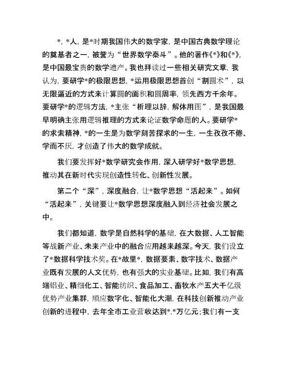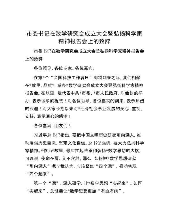 市委书记在数学研究会成立大会暨弘扬科学家精神报告会上的致辞 2024-07-23 Word模板 147 购买前,请一定要先点击这里看看,欢迎持续关注,精彩模板每天推送 预览结束,本文件为word文档,一共4页,共1654字,请购买后,下载后查看 购买前,请一定要先点击这里看看,欢迎持续关注,精彩模板每天推送 资源下载下载价格29 RMBVIP免费升级VIP点击检测网盘有效后购买有任何充值和下载问题请加微信:xuexixuexi66 0 演讲发言