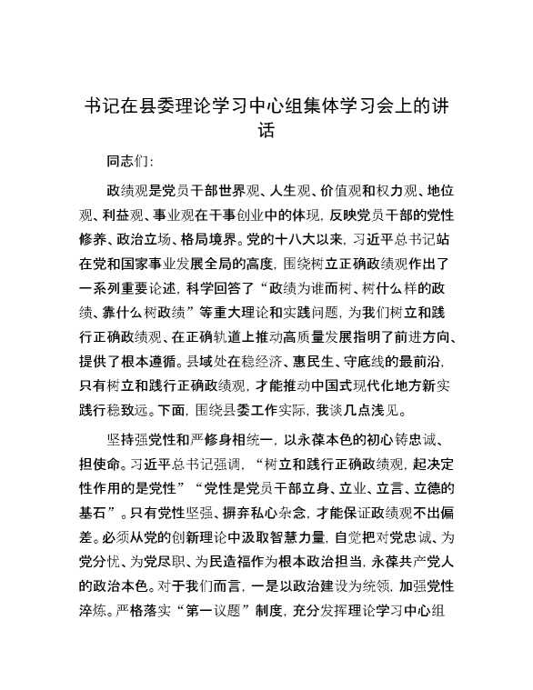 书记在县委理论学习中心组集体学习会上的讲话 2024-07-23 Word模板 106 购买前,请一定要先点击这里看看,欢迎持续关注,精彩模板每天推送 预览结束,本文件为word文档,一共6页,共2639字,请购买后,下载后查看 购买前,请一定要先点击这里看看,欢迎持续关注,精彩模板每天推送 资源下载下载价格29 RMBVIP免费升级VIP点击检测网盘有效后购买有任何充值和下载问题请加微信:xuexixuexi66 0 演讲发言