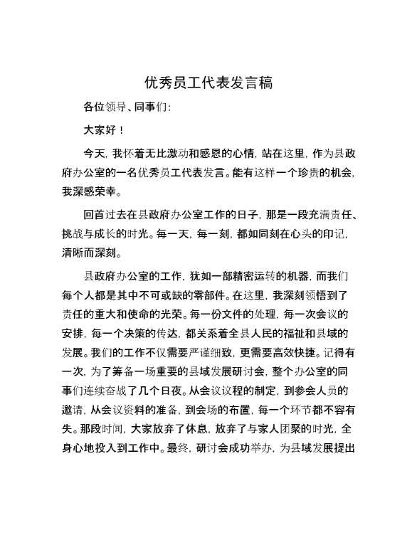 优秀员工代表发言稿 2024-07-23 Word模板 115 购买前,请一定要先点击这里看看,欢迎持续关注,精彩模板每天推送 预览结束,本文件为word文档,一共3页,共1307字,请购买后,下载后查看 购买前,请一定要先点击这里看看,欢迎持续关注,精彩模板每天推送 资源下载下载价格29 RMBVIP免费升级VIP点击检测网盘有效后购买有任何充值和下载问题请加微信:xuexixuexi66 0 演讲发言