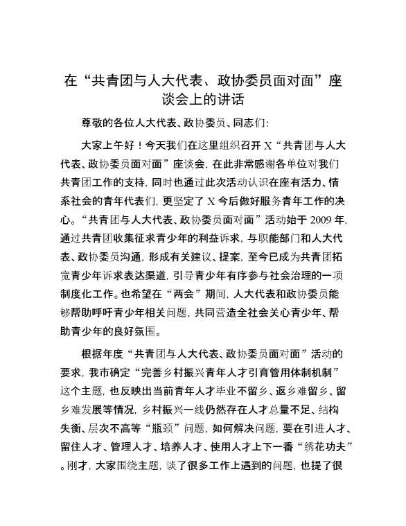 在“共青团与人大代表、政协委员面对面”座谈会上的讲话 2024-07-23 Word模板 119 购买前,请一定要先点击这里看看,欢迎持续关注,精彩模板每天推送 预览结束,本文件为word文档,一共3页,共1306字,请购买后,下载后查看 购买前,请一定要先点击这里看看,欢迎持续关注,精彩模板每天推送 资源下载下载价格29 RMBVIP免费升级VIP点击检测网盘有效后购买有任何充值和下载问题请加微信:xuexixuexi66 0 演讲发言