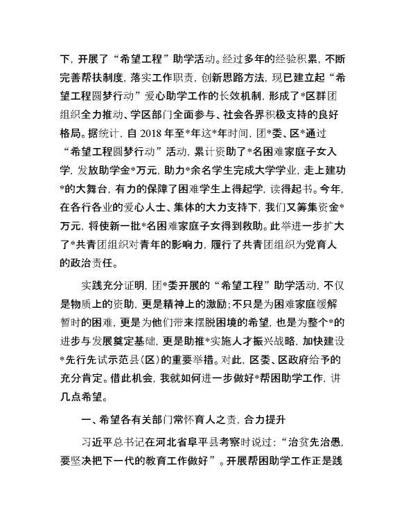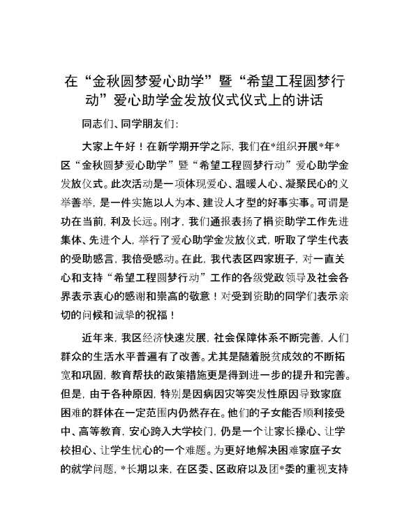 在“金秋圆梦爱心助学”暨“希望工程圆梦行动”爱心助学金发放仪式仪式上的讲话 2024-07-23 Word模板 107 购买前,请一定要先点击这里看看,欢迎持续关注,精彩模板每天推送 预览结束,本文件为word文档,一共6页,共2904字,请购买后,下载后查看 购买前,请一定要先点击这里看看,欢迎持续关注,精彩模板每天推送 资源下载下载价格29 RMBVIP免费升级VIP点击检测网盘有效后购买有任何充值和下载问题请加微信:xuexixuexi66 0 演讲发言