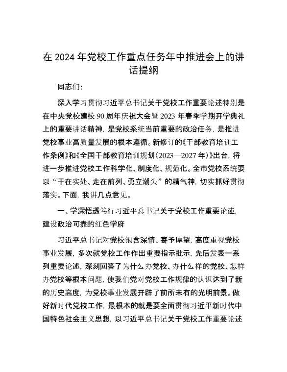 在2024年党校工作重点任务年中推进会上的讲话提纲 2024-07-23 Word模板 153 购买前,请一定要先点击这里看看,欢迎持续关注,精彩模板每天推送 预览结束,本文件为word文档,一共8页,共3629字,请购买后,下载后查看 购买前,请一定要先点击这里看看,欢迎持续关注,精彩模板每天推送 资源下载下载价格29 RMBVIP免费升级VIP点击检测网盘有效后购买有任何充值和下载问题请加微信:xuexixuexi66 0 演讲发言