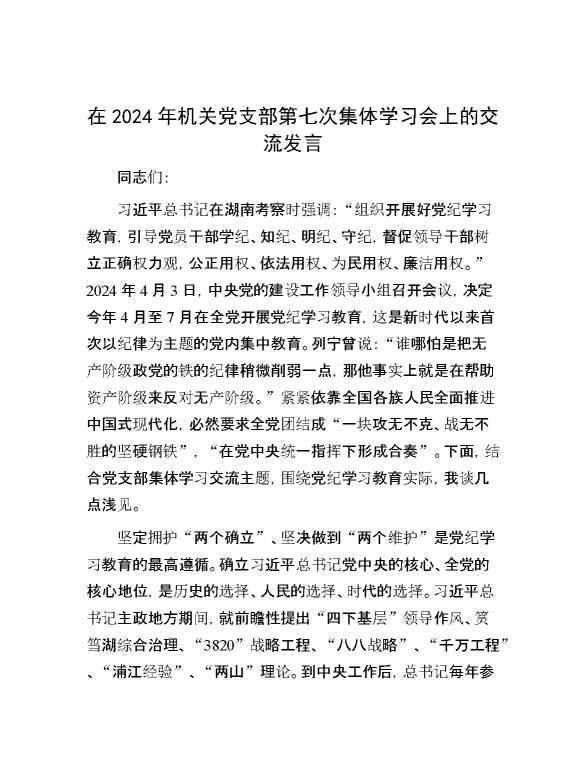 在2024年机关党支部第七次集体学习会上的交流发言 2024-07-23 Word模板 147 购买前,请一定要先点击这里看看,欢迎持续关注,精彩模板每天推送 预览结束,本文件为word文档,一共5页,共2211字,请购买后,下载后查看 购买前,请一定要先点击这里看看,欢迎持续关注,精彩模板每天推送 资源下载下载价格29 RMBVIP免费升级VIP点击检测网盘有效后购买有任何充值和下载问题请加微信:xuexixuexi66 0 演讲发言