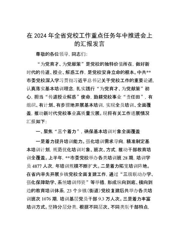 在2024年全省党校工作重点任务年中推进会上的汇报发言 2024-07-23 Word模板 108 购买前,请一定要先点击这里看看,欢迎持续关注,精彩模板每天推送 预览结束,本文件为word文档,一共4页,共1656字,请购买后,下载后查看 购买前,请一定要先点击这里看看,欢迎持续关注,精彩模板每天推送 资源下载下载价格29 RMBVIP免费升级VIP点击检测网盘有效后购买有任何充值和下载问题请加微信:xuexixuexi66 0 演讲发言