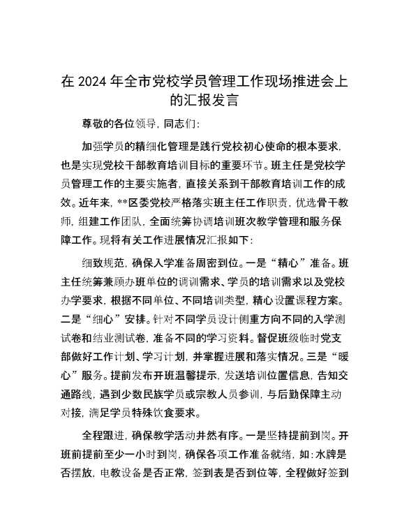 在2024年全市党校学员管理工作现场推进会上的汇报发言 2024-07-23 Word模板 105 购买前,请一定要先点击这里看看,欢迎持续关注,精彩模板每天推送 预览结束,本文件为word文档,一共3页,共1428字,请购买后,下载后查看 购买前,请一定要先点击这里看看,欢迎持续关注,精彩模板每天推送 资源下载下载价格29 RMBVIP免费升级VIP点击检测网盘有效后购买有任何充值和下载问题请加微信:xuexixuexi66 0 演讲发言