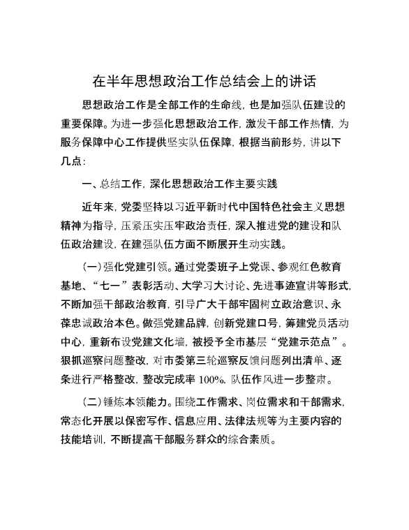 在半年思想政治工作总结会上的讲话 2024-07-23 Word模板 118 购买前,请一定要先点击这里看看,欢迎持续关注,精彩模板每天推送 预览结束,本文件为word文档,一共5页,共2486字,请购买后,下载后查看 购买前,请一定要先点击这里看看,欢迎持续关注,精彩模板每天推送 资源下载下载价格29 RMBVIP免费升级VIP点击检测网盘有效后购买有任何充值和下载问题请加微信:xuexixuexi66 0 演讲发言