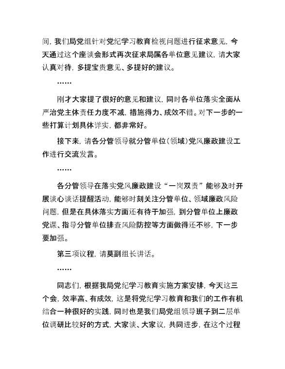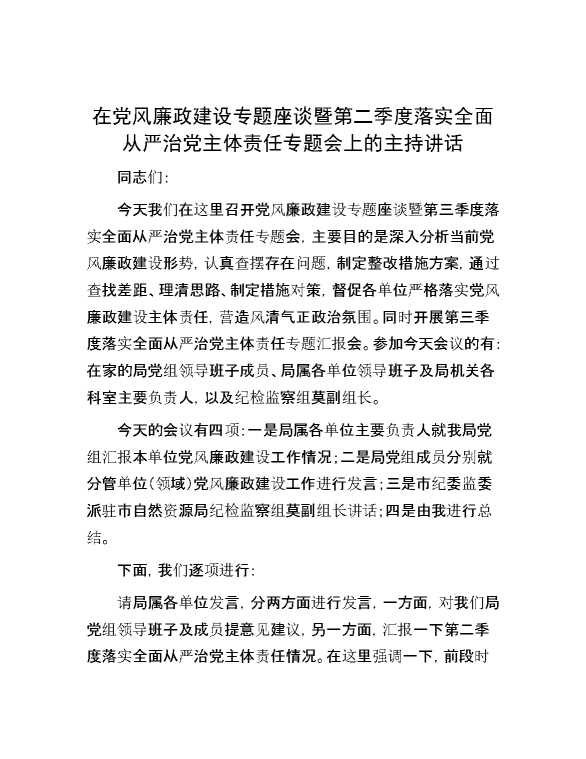 在党风廉政建设专题座谈暨第二季度落实全面从严治党主体责任专题会上的主持讲话 2024-07-23 Word模板 159 购买前,请一定要先点击这里看看,欢迎持续关注,精彩模板每天推送 预览结束,本文件为word文档,一共7页,共3066字,请购买后,下载后查看 购买前,请一定要先点击这里看看,欢迎持续关注,精彩模板每天推送 资源下载下载价格29 RMBVIP免费升级VIP点击检测网盘有效后购买有任何充值和下载问题请加微信:xuexixuexi66 0 演讲发言