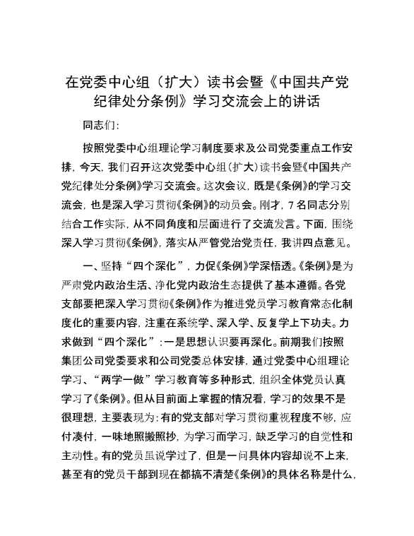 在党委中心组(扩大)读书会暨《中国共产党纪律处分条例》学习交流会上的讲话 2024-07-23 Word模板 114 购买前,请一定要先点击这里看看,欢迎持续关注,精彩模板每天推送 预览结束,本文件为word文档,一共10页,共5092字,请购买后,下载后查看 购买前,请一定要先点击这里看看,欢迎持续关注,精彩模板每天推送 资源下载下载价格29 RMBVIP免费升级VIP点击检测网盘有效后购买有任何充值和下载问题请加微信:xuexixuexi66 0 演讲发言