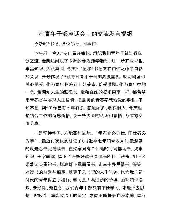 在青年干部座谈会上的交流发言提纲 2024-07-23 Word模板 121 购买前,请一定要先点击这里看看,欢迎持续关注,精彩模板每天推送 预览结束,本文件为word文档,一共5页,共2366字,请购买后,下载后查看 购买前,请一定要先点击这里看看,欢迎持续关注,精彩模板每天推送 资源下载下载价格29 RMBVIP免费升级VIP点击检测网盘有效后购买有任何充值和下载问题请加微信:xuexixuexi66 0 演讲发言