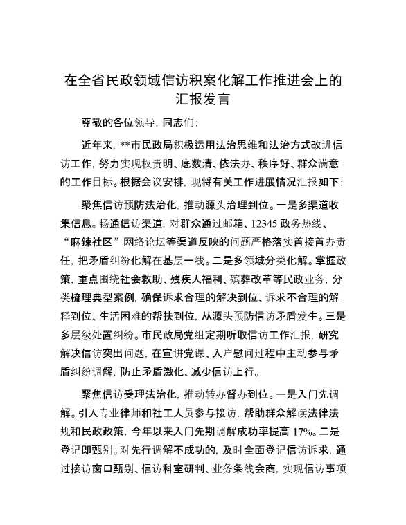 在全省民政领域信访积案化解工作推进会上的汇报发言 2024-07-23 Word模板 150 购买前,请一定要先点击这里看看,欢迎持续关注,精彩模板每天推送 预览结束,本文件为word文档,一共3页,共1267字,请购买后,下载后查看 购买前,请一定要先点击这里看看,欢迎持续关注,精彩模板每天推送 资源下载下载价格29 RMBVIP免费升级VIP点击检测网盘有效后购买有任何充值和下载问题请加微信:xuexixuexi66 0 演讲发言